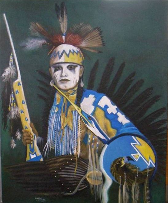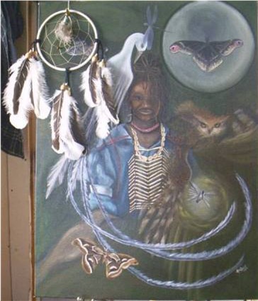 | Angie Moffatt (Talks To Ravens) - Wolf Clan of the Southern Cherokee Nation of Kentucky Angie is a mother of three and Home Schools. It's amazing what she has accomplished in her paintings, although I don't know when she finds the time! Angie also makes Dream Pillows! Ask her about those - everyone should have one or two. To purchase one of her fabulous works of art shown here, or to commission a painting, mural, or painted door, contact Angie directly here. One half of the total cost will be due upon ordering and is non-refundable. All prices are for UNFRAMED paintings unless otherwise stated. Check out Angie's second page to see her Cherokee Ribbon Shirts!! (Click on images to enlarge) |